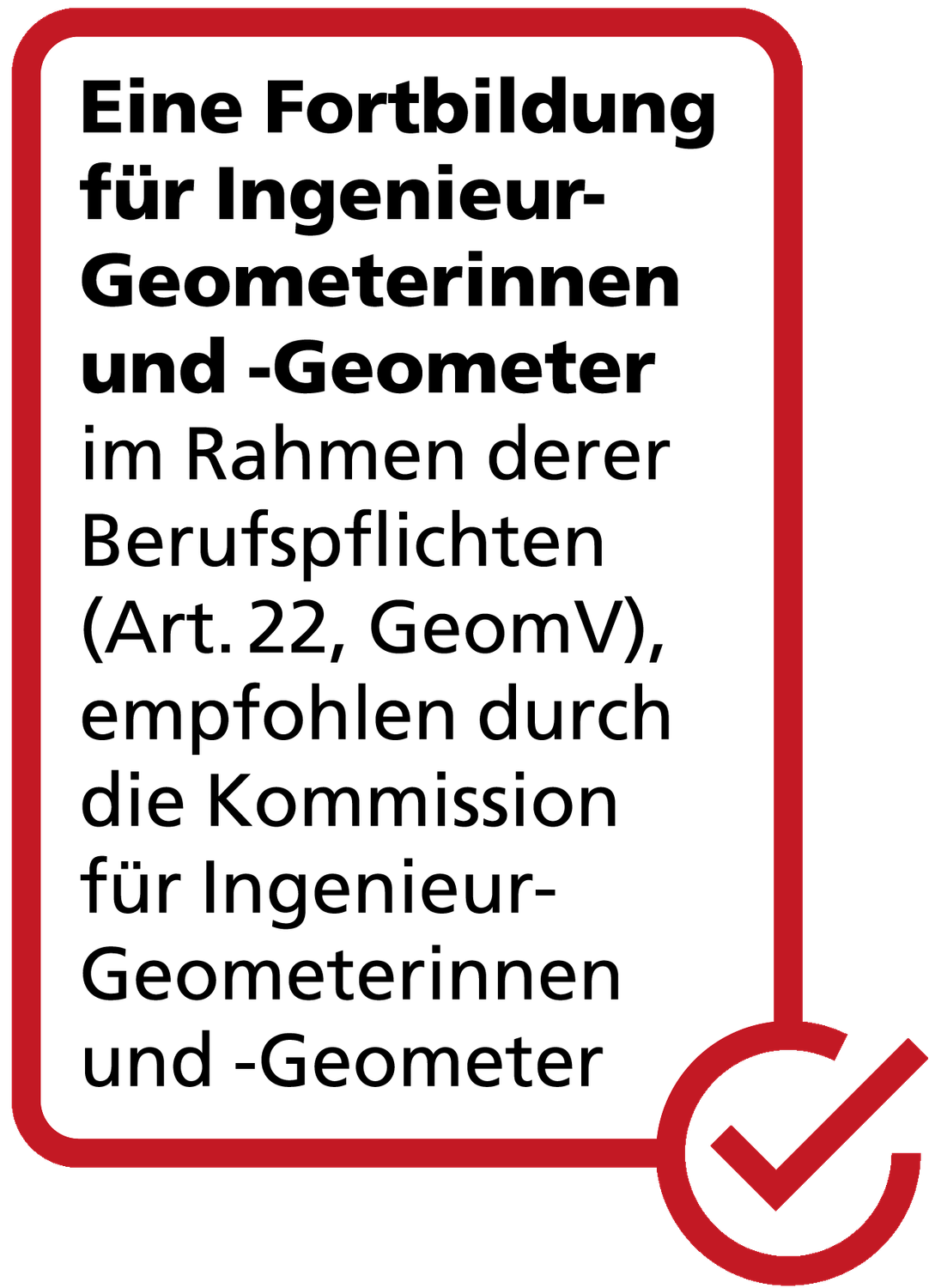 Insbesondere Veranstaltungen, die von der Kommission für Ingenieur-Geometerinnen und -Geometer als Fortbildung für Ingenieur-Geometerinnen und -Geometer im Rahmen deren Berufspflichten (Art. 22, GeomV) empfohlen werden.