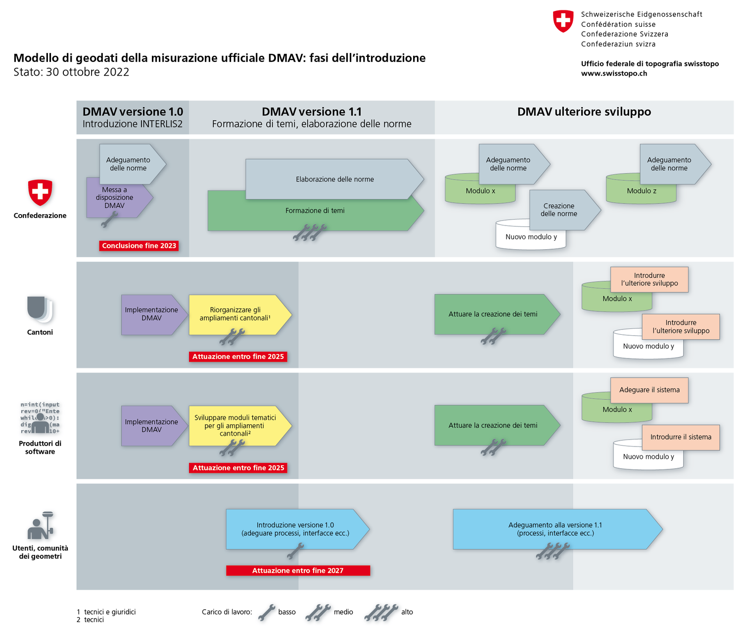 - Nomina dei cantoni pilota per l'introduzione del DMAV versione 1.0 da parte del «Servizio specializzato Direzione federale delle misurazioni catastali» dell'Ufficio federale di topografia swisstopo.